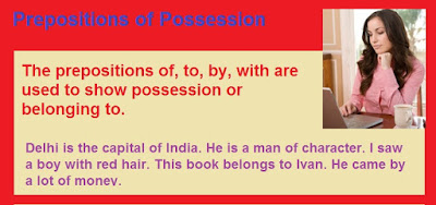 Най-често използваните предлози, изразяващи някаква форма на притежание (Prepositions of Possession), са следните:- of,